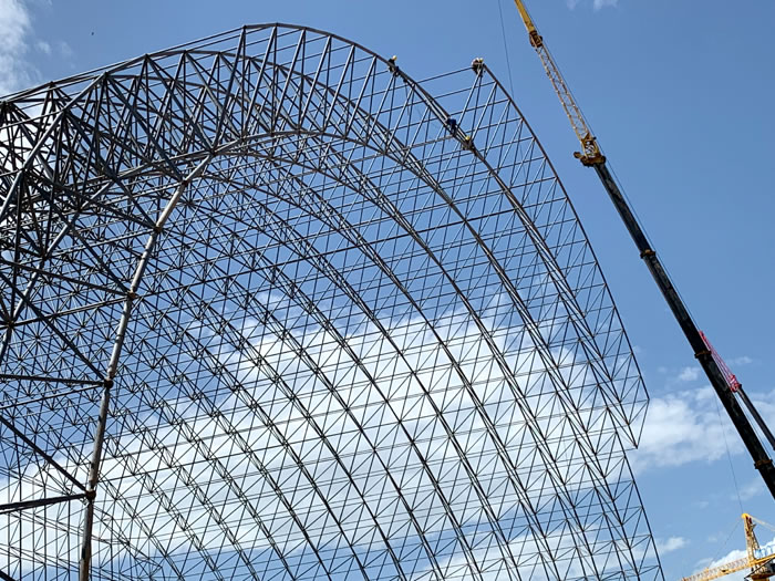 (2)网架加工前应对现场尺寸进行复测,确认无误后方可进行加工、安装;网架制作、运输、安装应遵守《空间网格结构技术规程》JGJ7-2010、《钢网架尚志螺栓球节点》JG/T 10-2009、《钢网架尚志螺栓球节点用高强度螺栓》 GB/T 16939-2016、《尚志钢结构尚志工程尚志施工规范》 GB50755-2012、《尚志钢结构尚志工程尚志施工质量验收标准》 GB50205-2020。